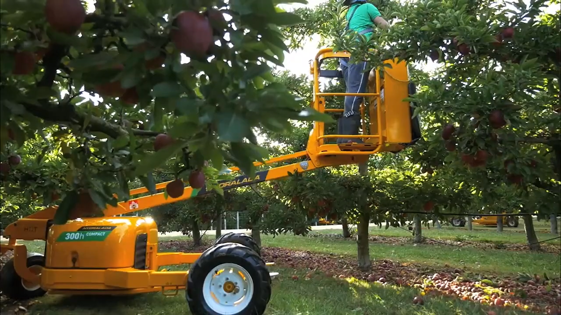 Plataforma que atende as áreas de horticultura e arboricultura,. Máquinas de operação individual para cuidar do trabalho pesado de elevação entre as filas de cultivo.